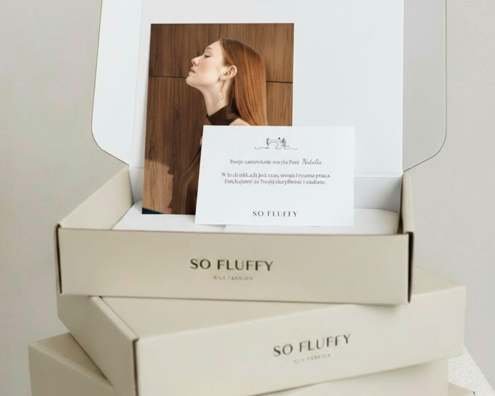 Każde zamówienie otrzymujesz w estetycznym pudełku So Fluffy — gotowym do wręczenia wraz z ręcznie podpisaną kartką przez krawcową która uszyła Twoje zamówienie — bo każda klientka jest dla nas ważna.