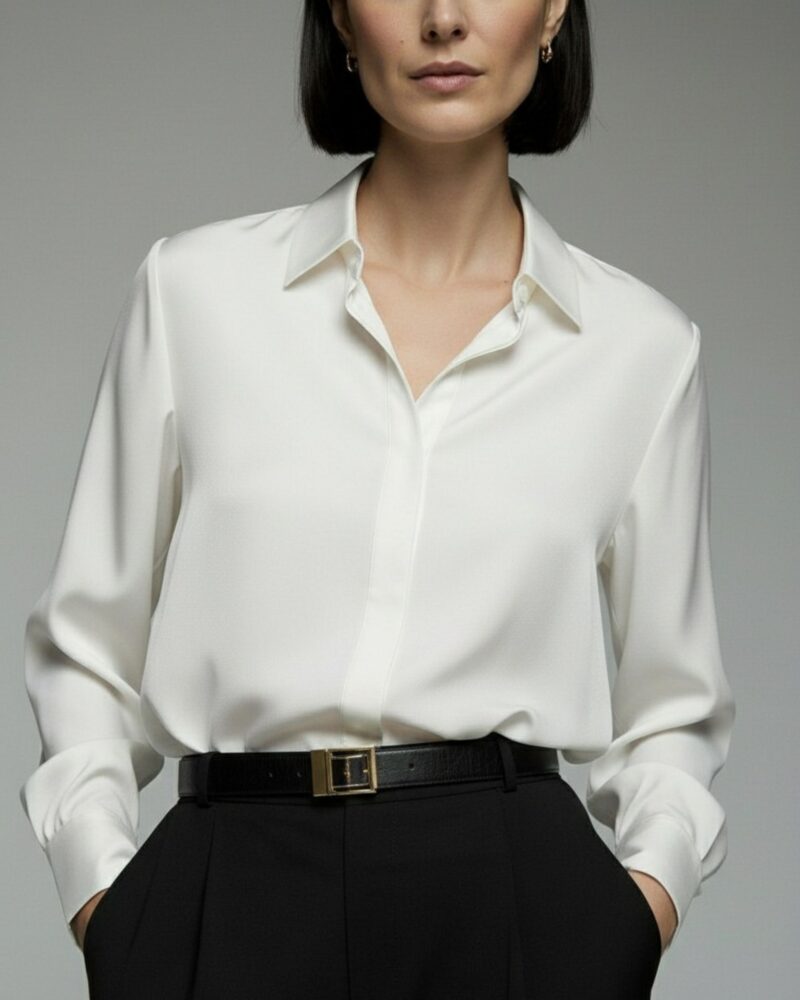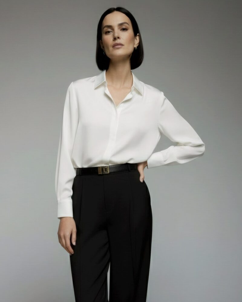 An incredibly comfortable shirt with a casual oversized cut and a clearly lowered shoulder line.