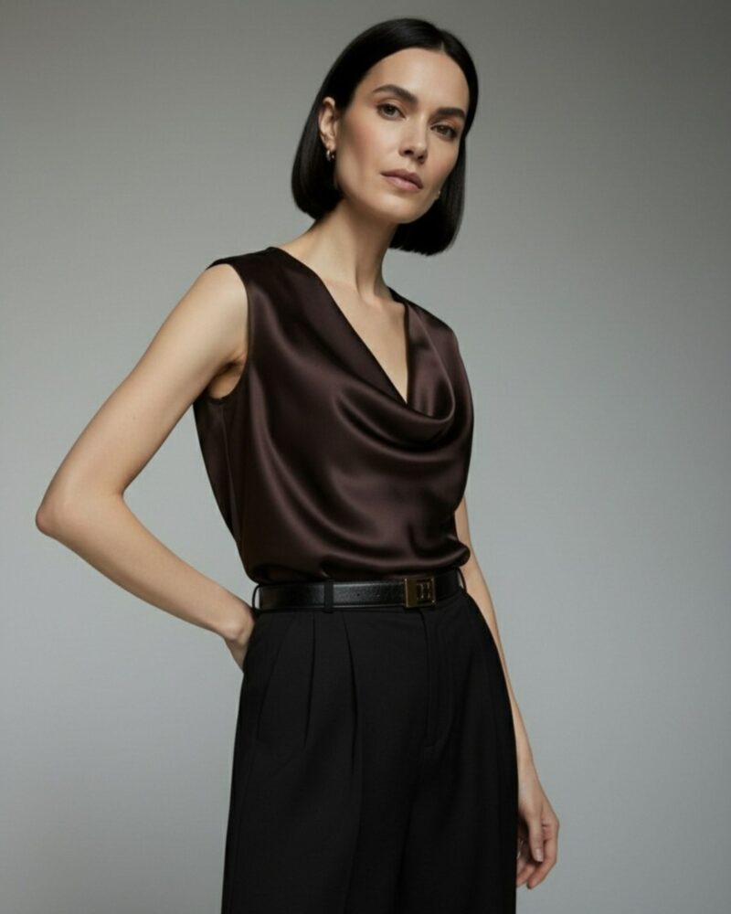 Give your wardrobe a touch of luxury with this silk blouse. The unique cowl neckline adds subtle elegance, while the loose cut emphasizes femininity in the most sophisticated way. Made of the highest quality silk, the blouse not only drapes beautifully, but also gently envelops the skin, providing comfort throughout the day.