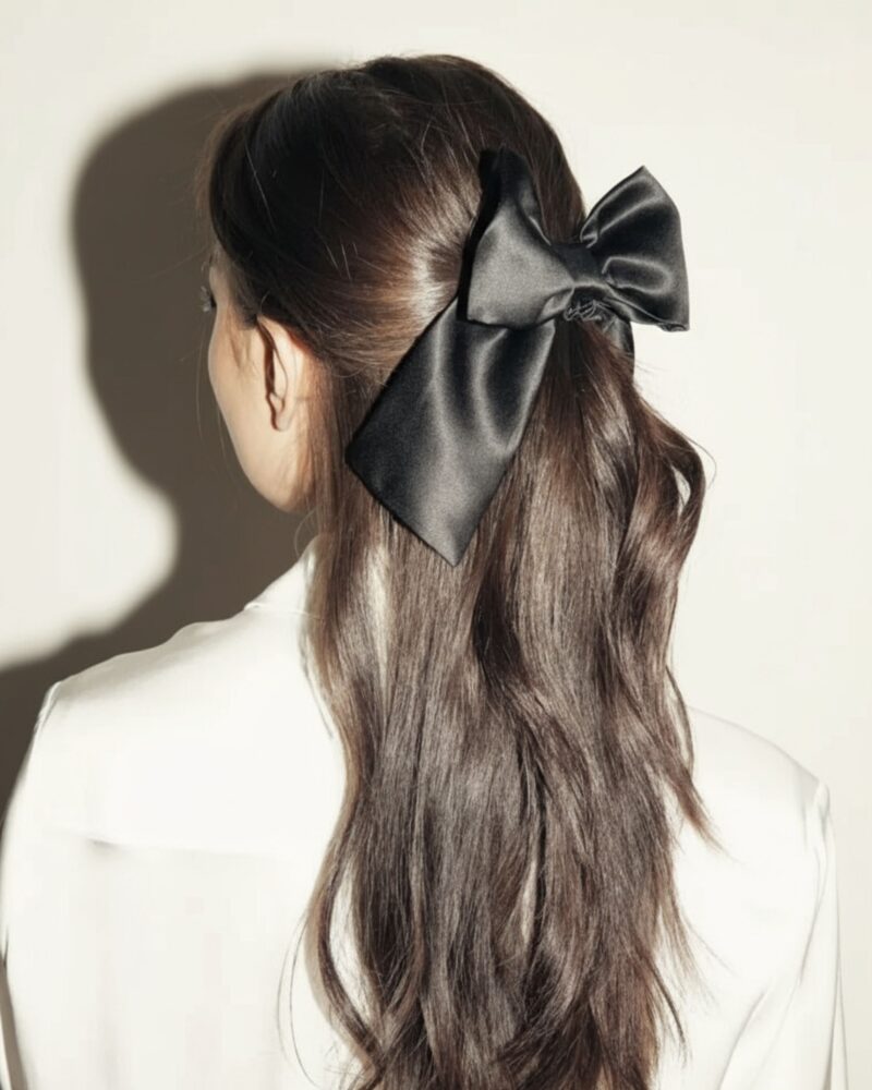 The silk hair bow will add a girly touch to even the most classic hairstyle. Thanks to the silk elastic, the bow will hold on any type and density of hair.