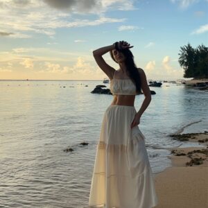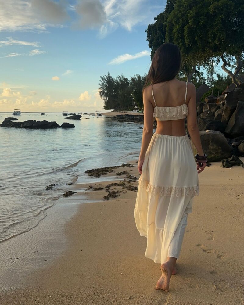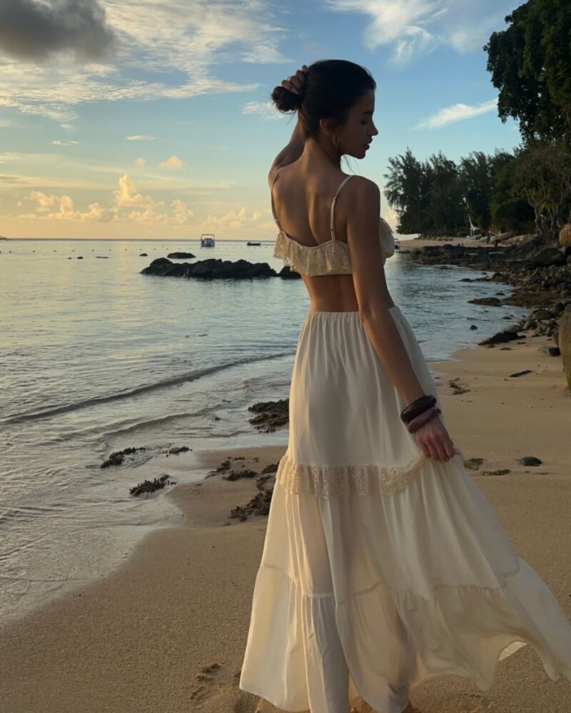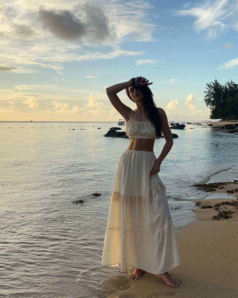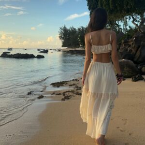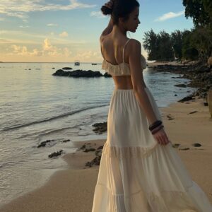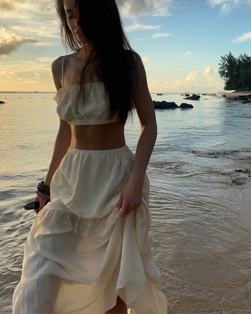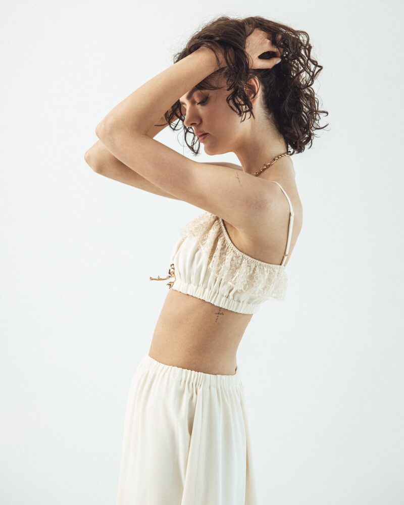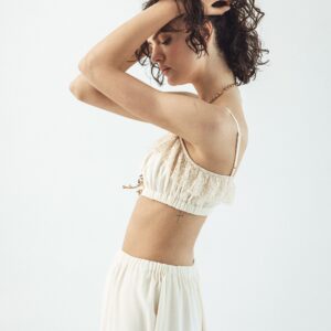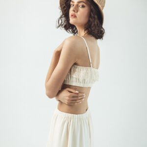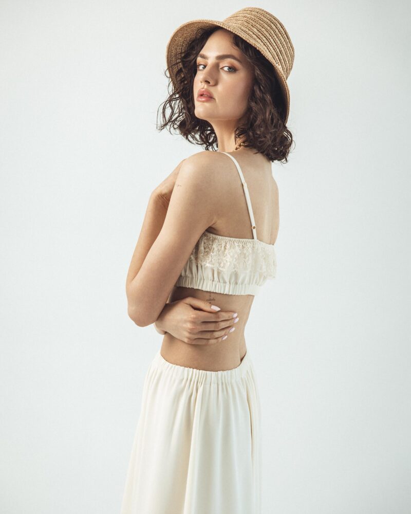 Our silk boho-style crop top is the perfect choice for those who value comfort and freedom of movement. Crafted from soft, breathable silk crêpe, it gently conforms to the body, and the double-layered fabric ensures it is not see-through. Adjustable straps and an underbust elastic band allow for a perfect fit, providing all-day comfort. Subtle details make this top versatile — ideal for both casual outfits and bolder styling. A wardrobe essential that can be styled in multiple ways, it pairs beautifully with jeans or flowing skirts. Perfect when worn with our Verona Silk Skirt.