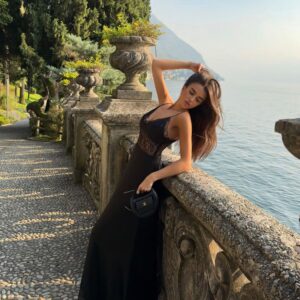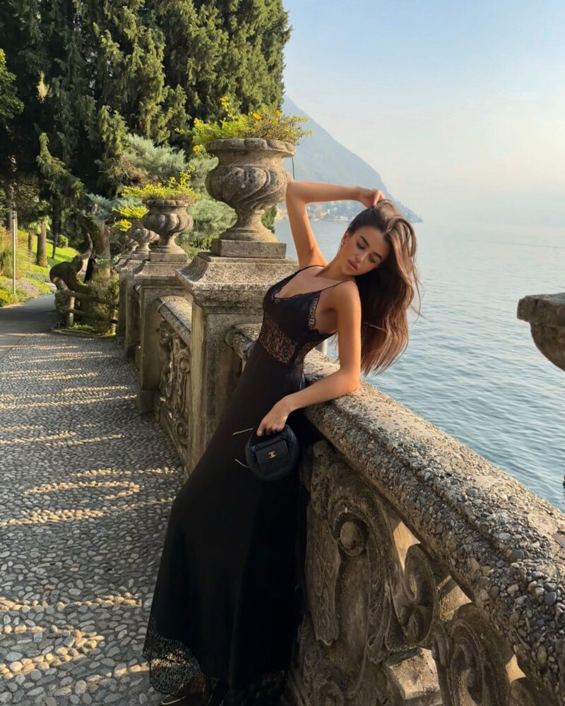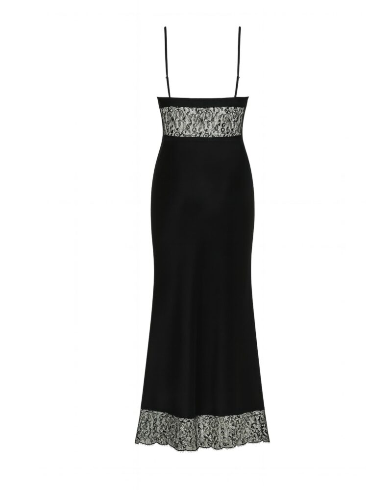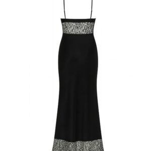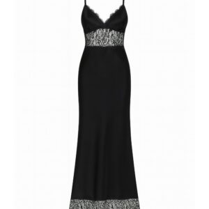 A stunning 100% silk dress that combines luxury and femininity. The soft-touch silk satin with a subtle sheen drapes beautifully, accentuating the body’s natural elegance. Lace inserts at the waist and hem add a sensual touch, creating a unique contrast with the classic black. The deep V-neckline and adjustable straps ensure the dress fits perfectly, ensuring comfort and confidence. This dress is perfect for special evenings, weddings, elegant dinners, or romantic outings.