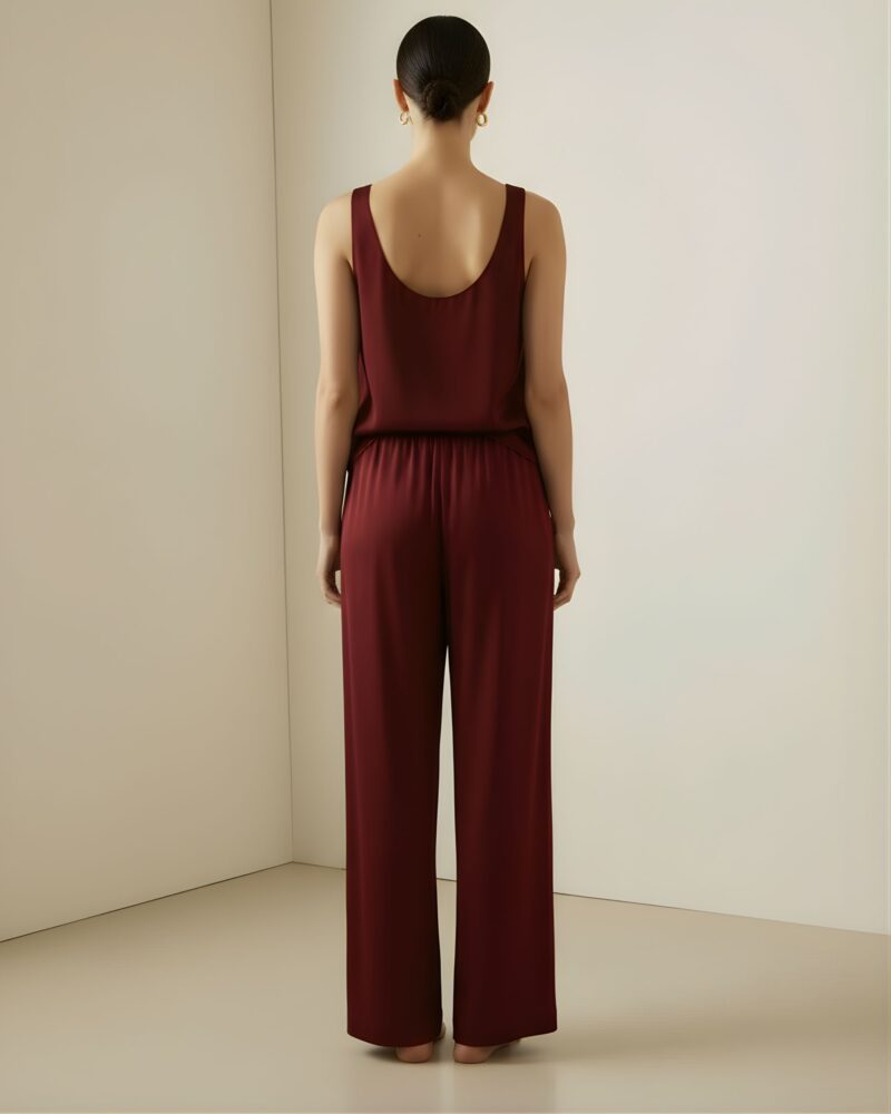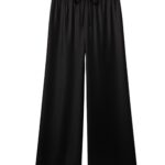 With a wide-leg cut and an elastic waistband with an adjustable drawstring, they fit beautifully to the body while allowing complete freedom of movement. Perfect for evening outings, elegant occasions, or casual chic looks, these trousers are a timeless addition to any wardrobe.