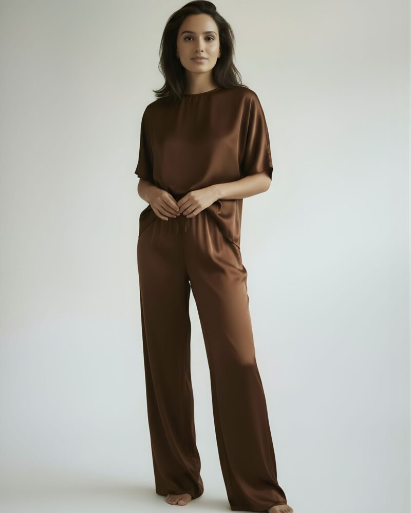 These elegant silk satin trousers are the perfect combination of comfort and class. Made from high-quality satin, they offer a luxurious wearing experience thanks to their softness and delicate sheen.