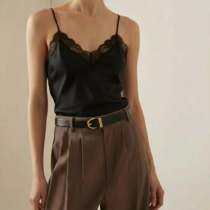 An elegant blouse crafted from high-quality silk that combines subtle femininity with timeless style. Delicate lace embellishes the top and bottom sections, adding a touch of sophistication, while the satin fabric perfectly accentuates the skin’s natural radiance. Adjustable straps and a straight cut ensure comfort, making it perfect for evenings out, special occasions, or pairing with casual everyday outfits. Choose this blouse to feel special – whether it’s subtle or bold. Measurements: