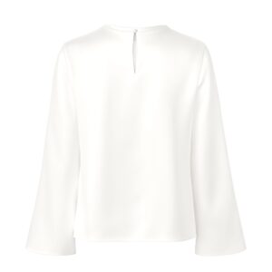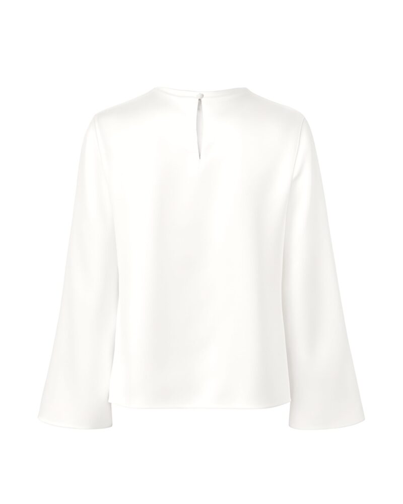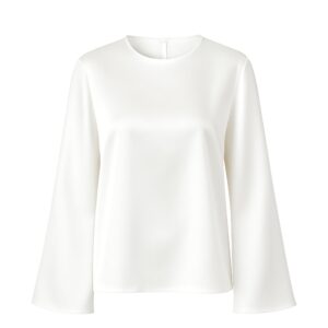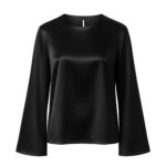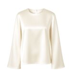 Exceptionally soft and subtly lustrous, this blouse is crafted from 100% premium silk satin. The relaxed, boxy silhouette drapes gracefully over the body, while the wide sleeves add a touch of modern ease. A delicate back slit with a tiny loop and button fastening ensures effortless wear and serves as a refined, understated detail.