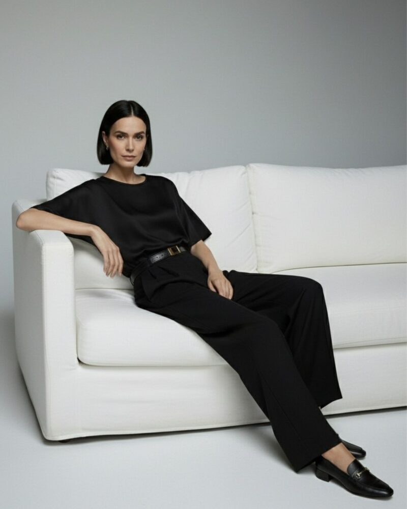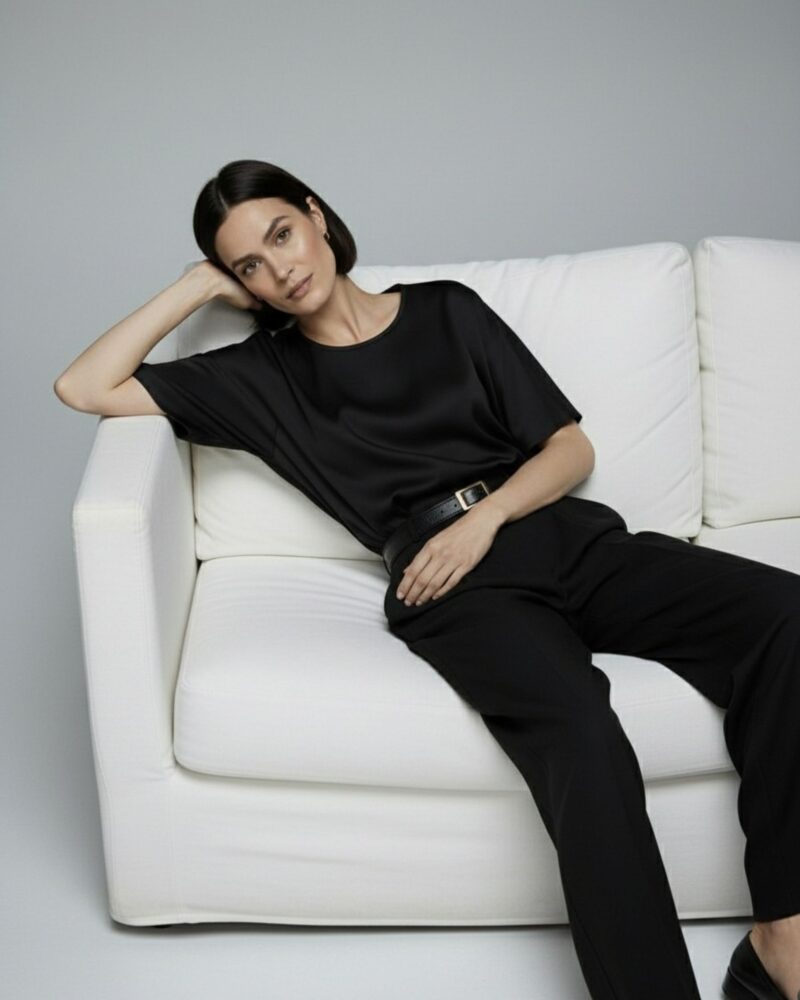 Add this timeless piece to your wardrobe — it combines the luxury of silk with minimalist design, making it perfect for both office wear and special occasions.