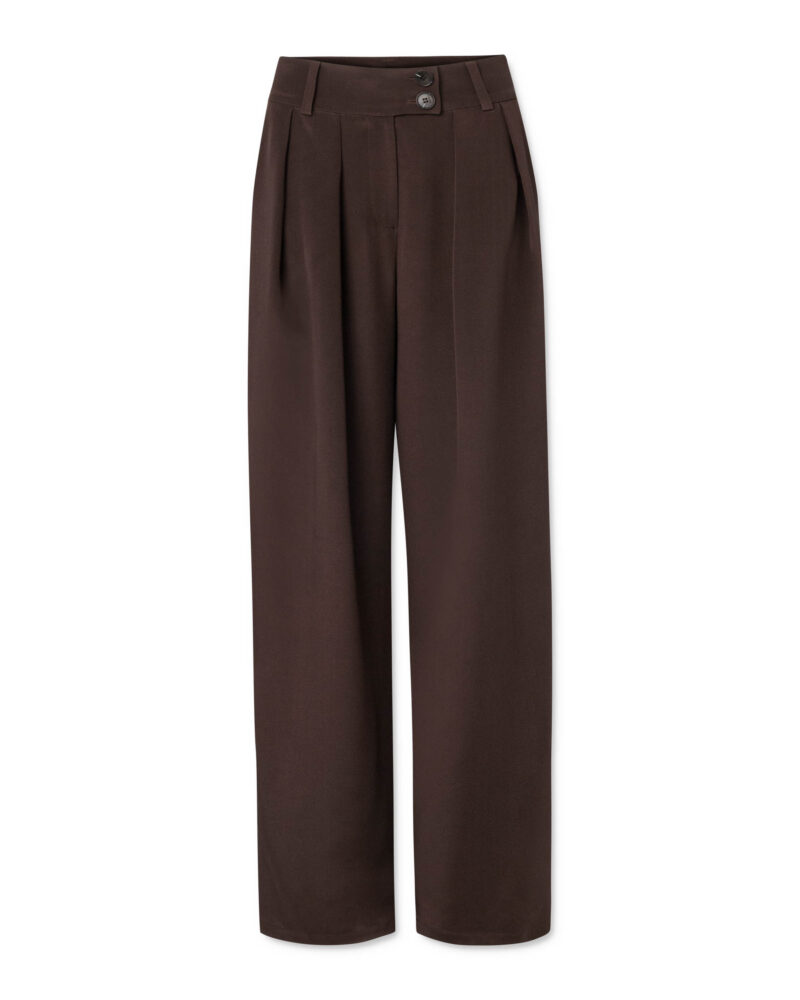 Elegant Talia trousers are made of high-quality silk, which gives lightness and freedom of movement, while emphasizing the natural proportions of the figure. The trousers are fastened with two buttons, set on a thick belt with belt loops, provide a perfect fit at the waist and comfort of wearing all day long, regardless of the occasion. The high waist emphasizes the waist, and the wide legs not only fit perfectly in movement, but also optically slim the legs, giving the silhouette lightness and harmony.