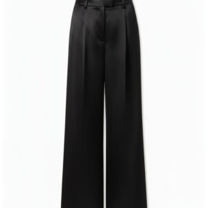 Eleganckie jedwabne spodnie wide leg – czarne