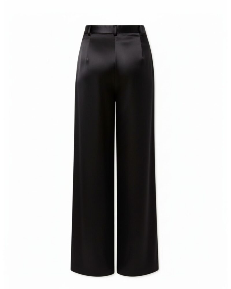 Spodnie z szerokimi nogawkami zostały wykonane z wysokiej jakości jedwabiu o gramaturze 30 momme i satynowym wykończeniu.