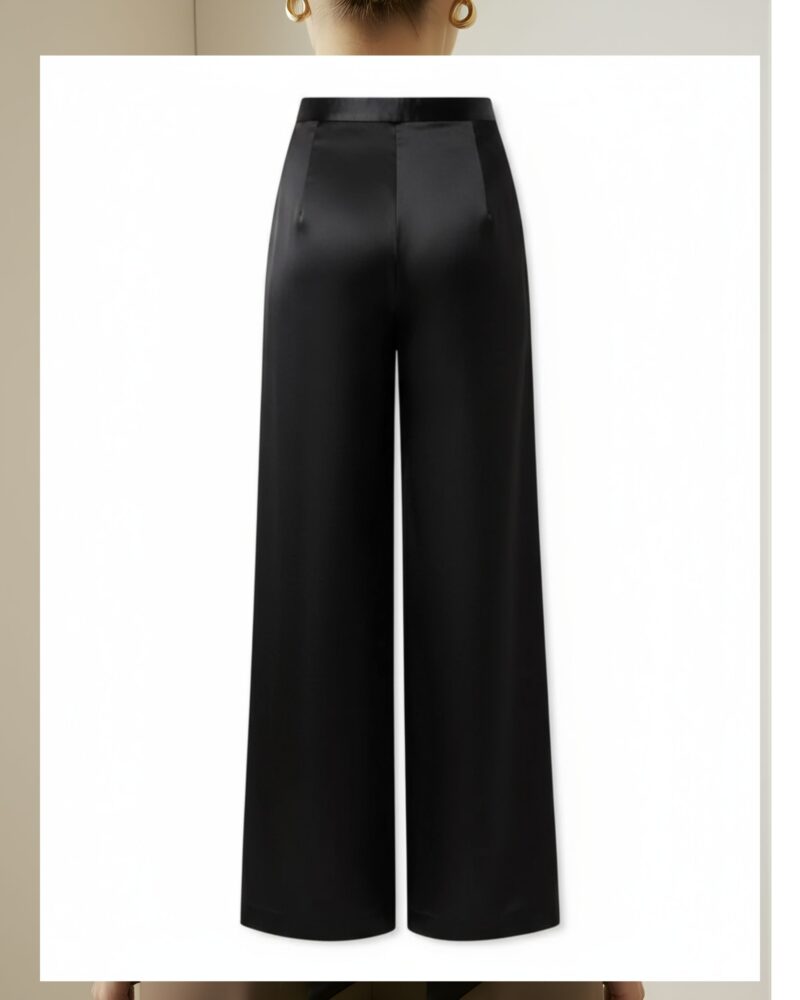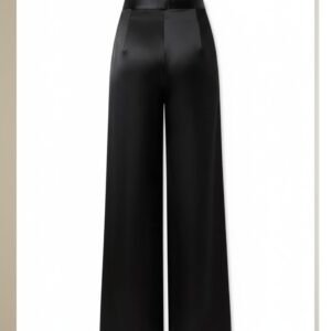 Spodnie z szerokimi nogawkami zostały wykonane z wysokiej jakości jedwabiu o gramaturze 30 momme i satynowym wykończeniu.