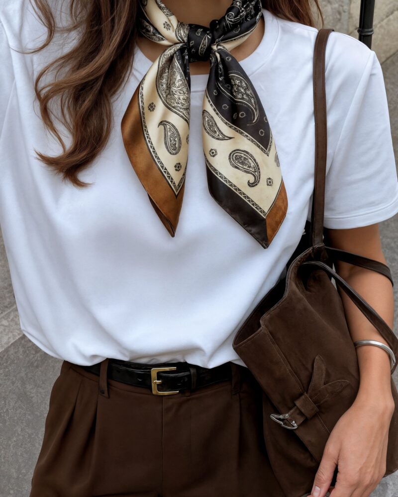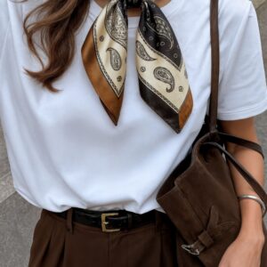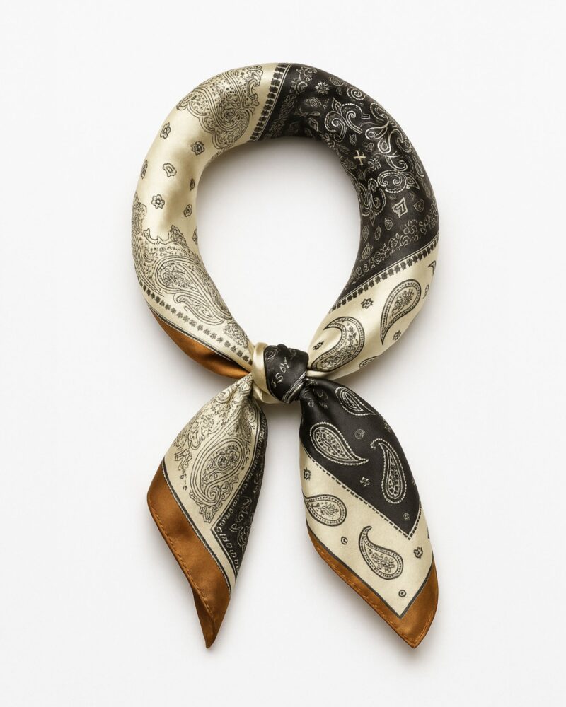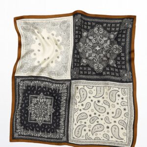 Delikatna i elegancka – jedwabna apaszka we wzór paisley, to ponadczasowy dodatek, który odmieni każdą stylizację. Wykonana w 100% z najwyższej jakości jedwabiu. Dzięki klasycznemu wzorowi i optymalnym wymiarom, sprawdzi się w każdej stylizacji.