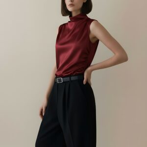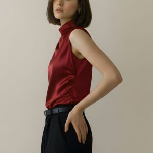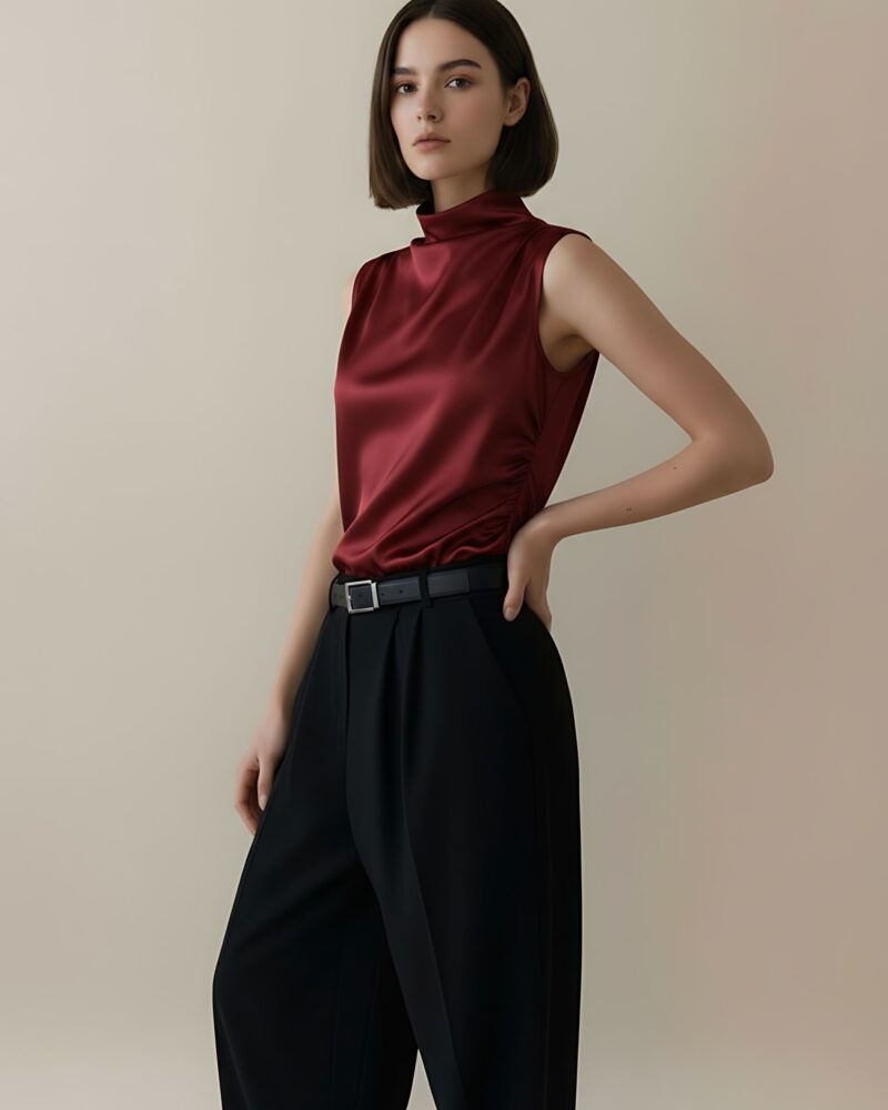 Dopasowany krój podkreśla sylwetkę, a subtelny połysk tkaniny nadaje stylizacji luksusowego charakteru. Idealna na spotkania biznesowe, wieczorne wyjścia i wyjątkowe okazje.