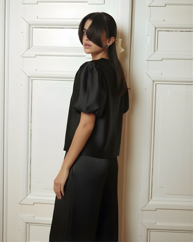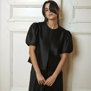 Jedwabna podszewka – wnosi komfort i elegancję, dbając o idealne ułożenie bluzki na sylwetce.