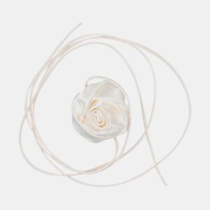 - charms z jedwabną różą, który możesz nosić nie tylko przy torebce, ale również na szyi jako choker lub przy pasku, marynarce czy nadgarstku