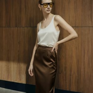 Elegancka i stylowa jedwabna ołówkowa spódnica, która zachwyci wszystkie miłośniczki klasyki w modzie. Wykonana z wysokiej jakości jedwabiu o gramaturze 30 momme, gwarantuje doskonałe dopasowanie do sylwetki oraz niezaprzeczalny komfort noszenia. Spódnica posiada praktyczne kieszenie, które dodają jej funkcjonalności oraz zapięcie na zamek z tyłu, które ułatwia zakładanie i zapewnia idealne trzymanie. Doskonała propozycja zarówno na specjalne okazje, jak i do pracy. Klasyczny fason ołówkowy podkreśli atuty figury i sprawi, że poczujesz się pewnie i stylowo w każdej sytuacji. Doskonały wybór dla kobiet ceniących sobie elegancję i wysoką jakość wykonania.
