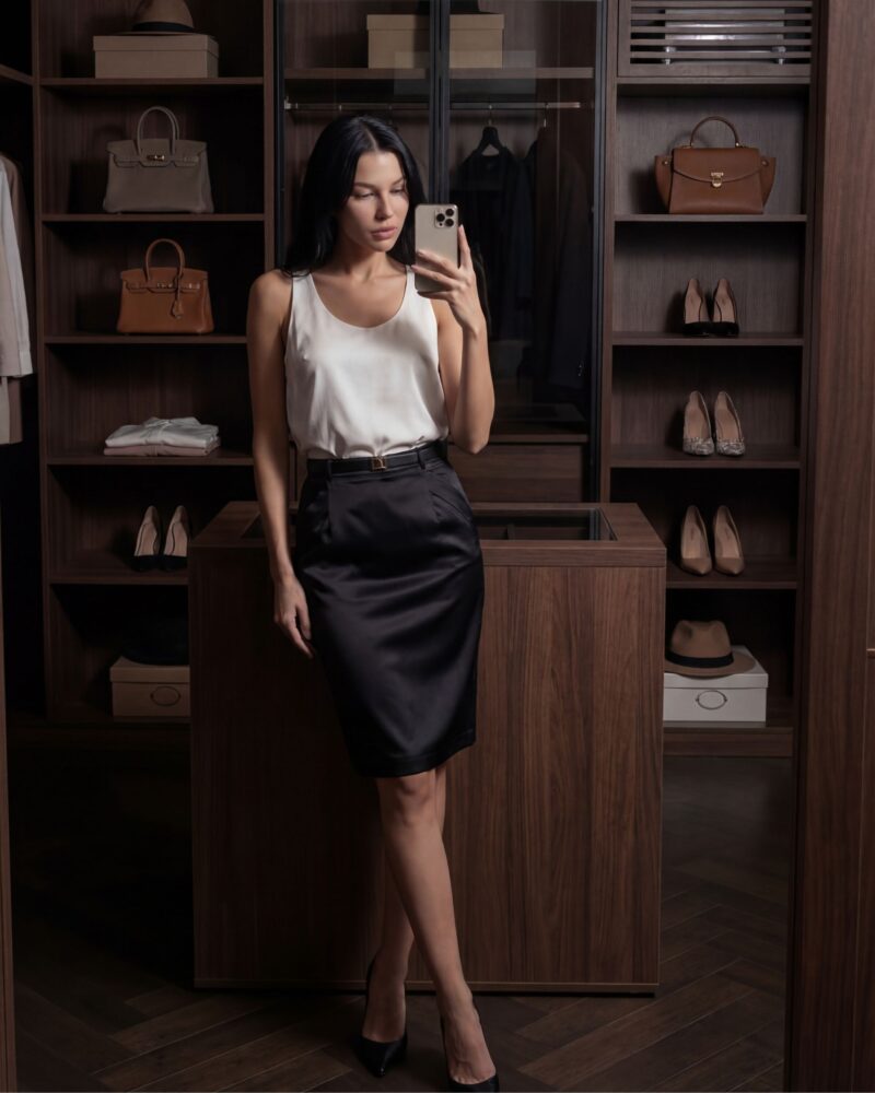 Elegancka i stylowa jedwabna ołówkowa spódnica, która zachwyci wszystkie miłośniczki klasyki w modzie. Wykonana z wysokiej jakości jedwabiu o gramaturze 30 momme, gwarantuje doskonałe dopasowanie do sylwetki oraz niezaprzeczalny komfort noszenia. Spódnica posiada praktyczne kieszenie, które dodają jej funkcjonalności oraz zapięcie na zamek z tyłu, które ułatwia zakładanie i zapewnia idealne trzymanie. Doskonała propozycja zarówno na specjalne okazje, jak i do pracy. Klasyczny fason ołówkowy podkreśli atuty figury i sprawi, że poczujesz się pewnie i stylowo w każdej sytuacji. Doskonały wybór dla kobiet ceniących sobie elegancję i wysoką jakość wykonania.