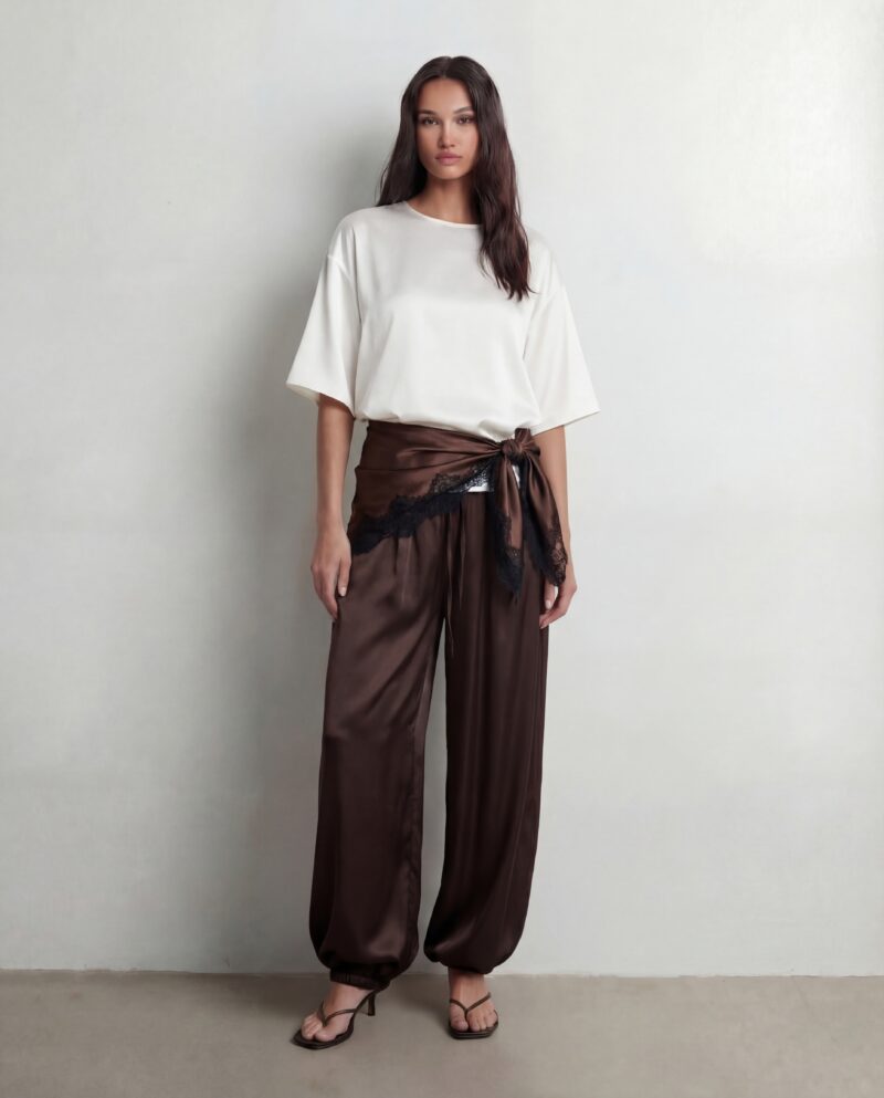 Jedwabne spodnie BALLOON – dark chocolate
