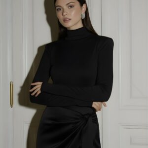 Prosty krój, marszczony golf, poduszki na ramionach. Wszystkie te elementy sprawiają, że nasz golf jest pod każdym względem dopracowany i perfekcyjny.
