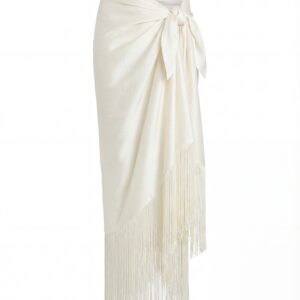Długie frędzle dodają mu rytmu i lekkości, tworząc efekt delikatnego ruchu przy każdym kroku. Naturalny odcień ecru pięknie współgra ze skórą, podkreślając letnią opaleniznę i minimalistyczne stylizacje. To element, który płynnie przechodzi z plaży do miasta — wystarczy zmienić dodatki.