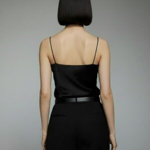 Elegancki jedwabny  top z regulowanymi ramiączkami typu spaghetti i dekoltem w kształcie wody. Kwintesencja luksusu i idealna baza każdej kobiecej garderoby.