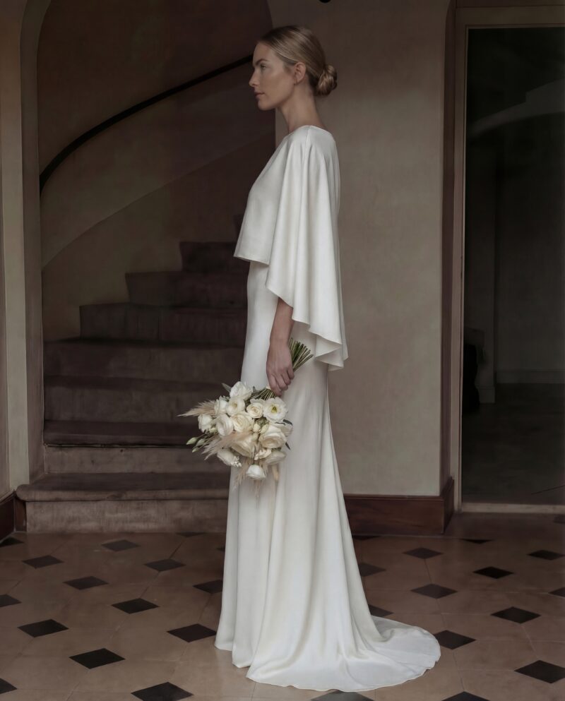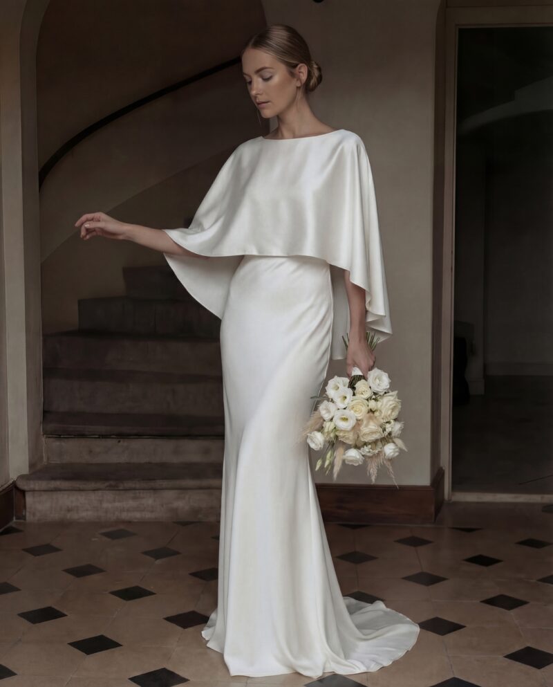 Peleryna z jedwabnej satyny – ecru