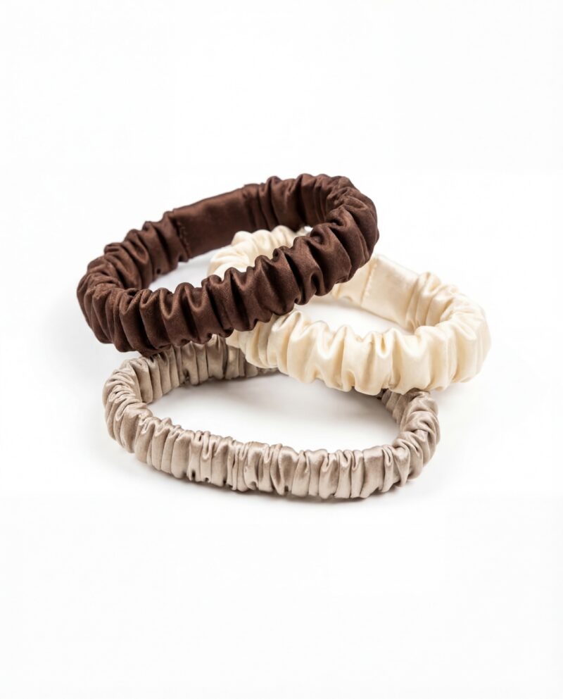Nasze jedwabne gumki to połączenie stylu i troski o zdrowie Twoich włosów. Wykonane z 100% naturalnego jedwabiu z certyfikatem OEKO-TEX, są niezwykle delikatne i bezpieczne nawet dla wrażliwych pasm.